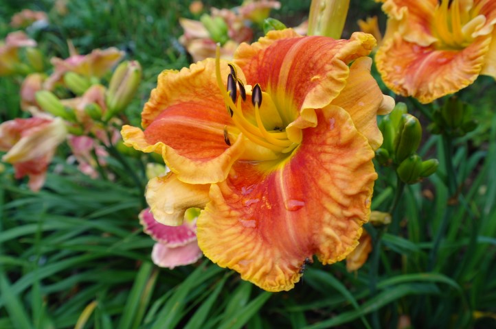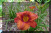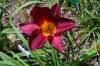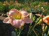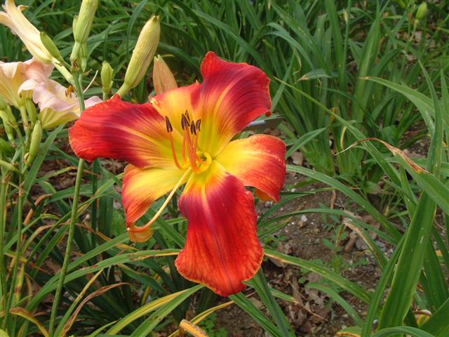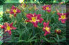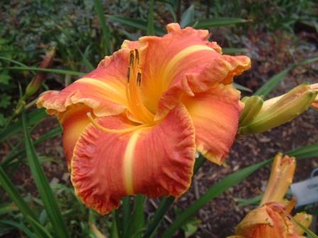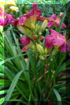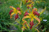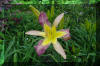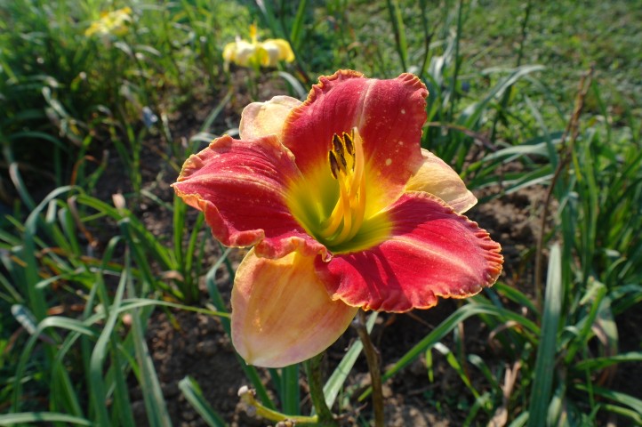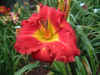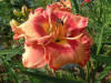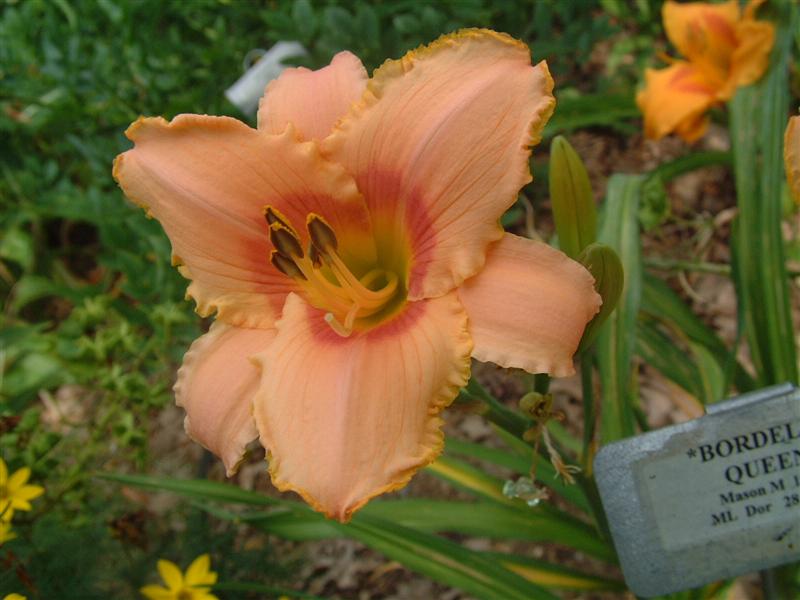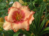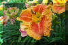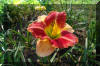 Peach with red eye and red yellow edge above green throat. (Grace From