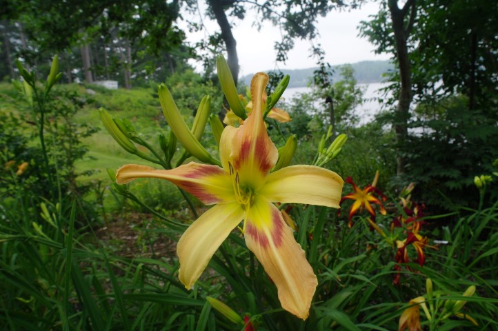 eye and edge above yellow green throat. (Glacier Bay × Bridgeton Bishop)