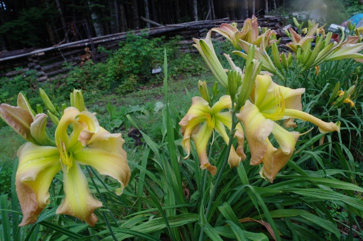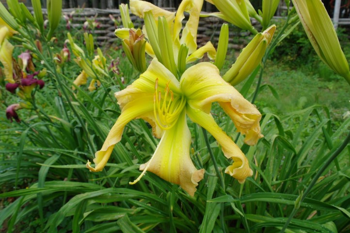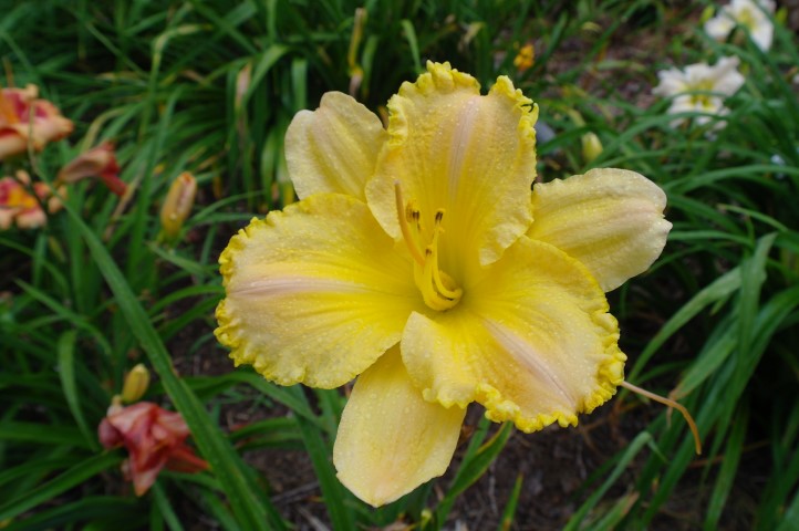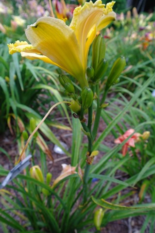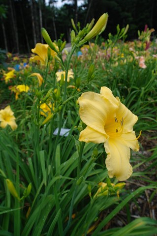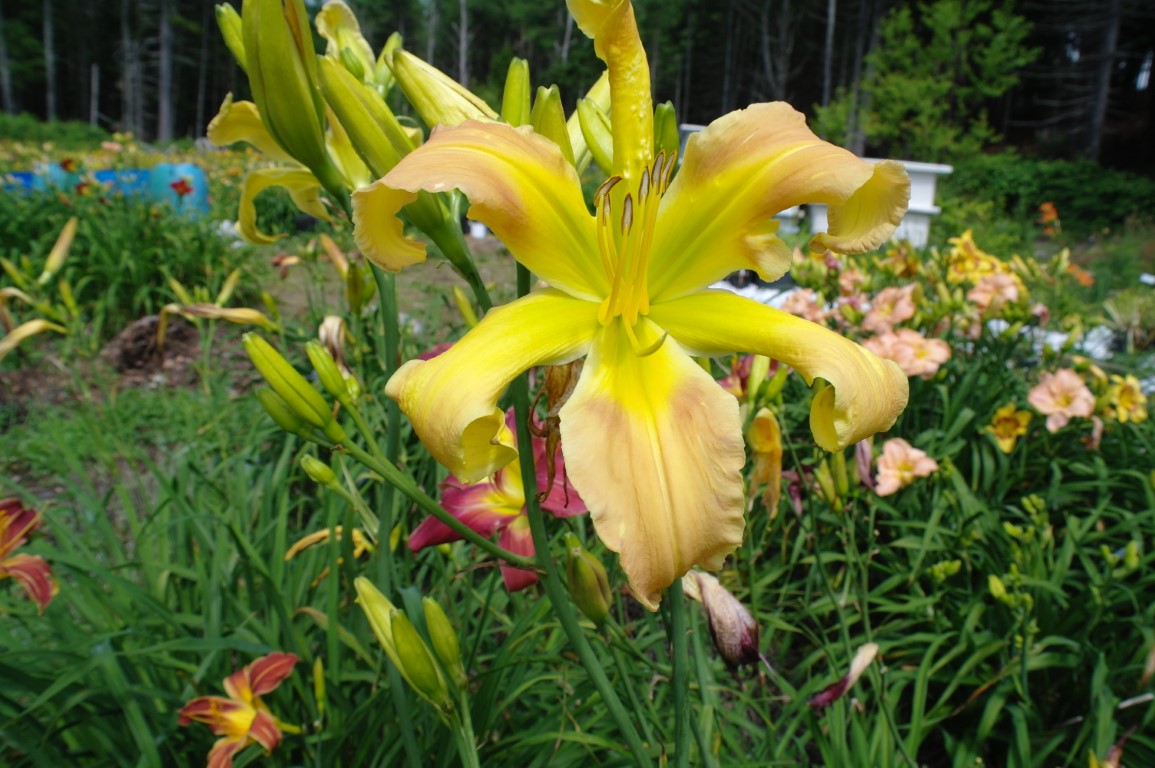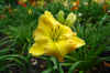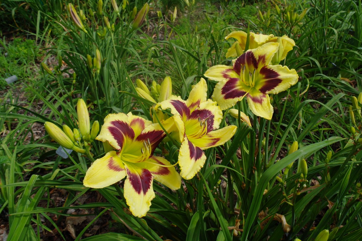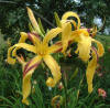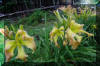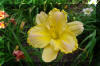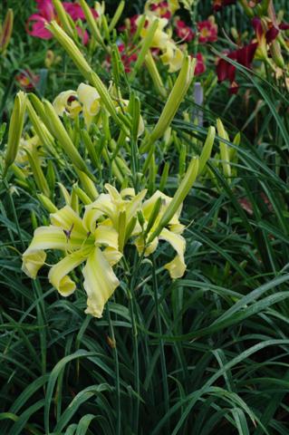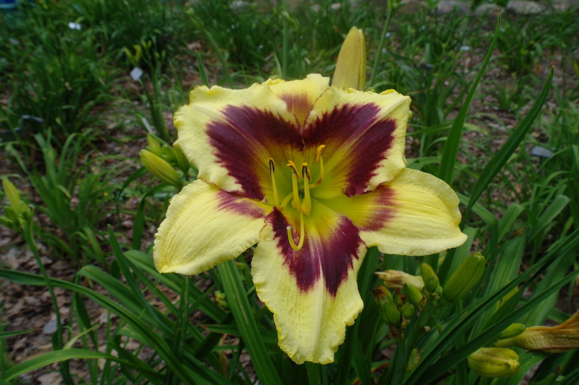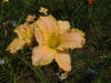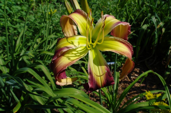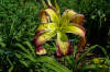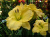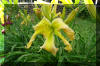 Beige yellow self with a green throat. (H.
