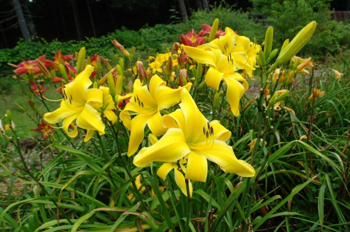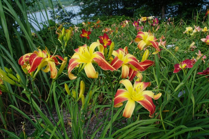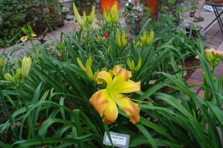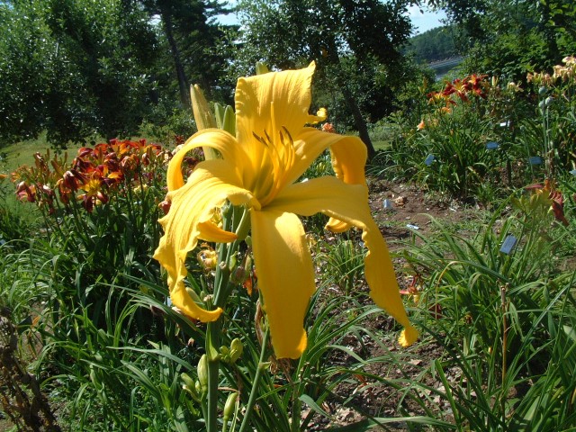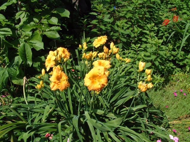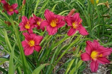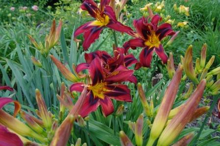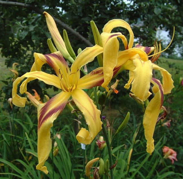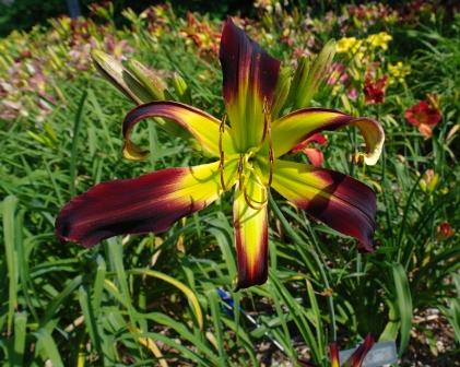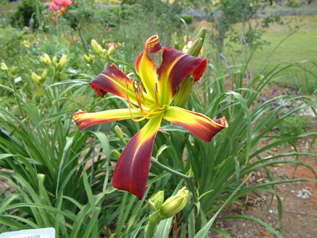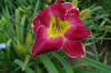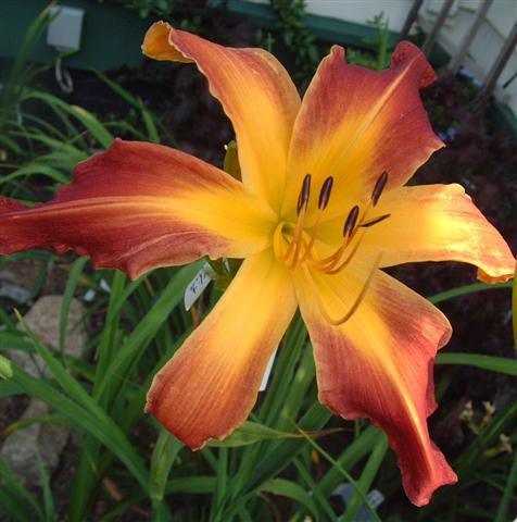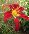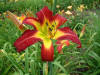 Deep red orange self above yellow throat. (Red Suspenders x