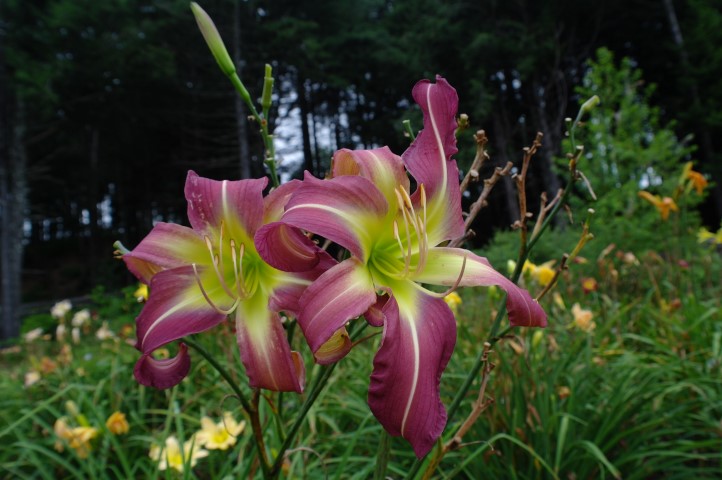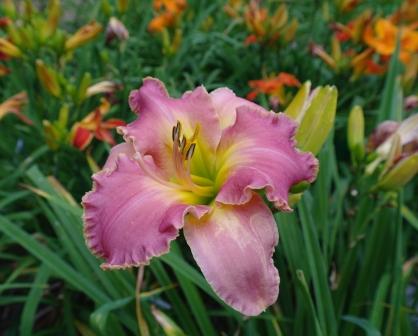Rosy lavender blend with violet eye above yellow to