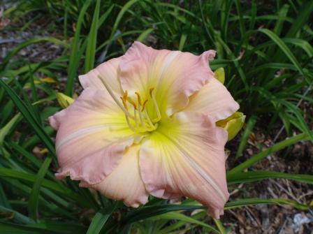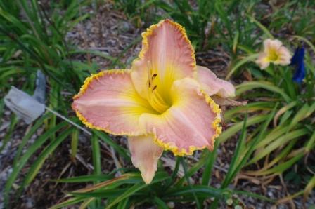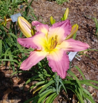pink blend with knobby yellow edge and light green throat. (Super