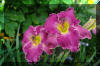 37 | 7 | Rosy purple with darker eyezone and huge chartreuse throat. (Willie Belle × Lola Branham) | HM 2002 | |