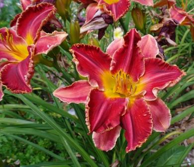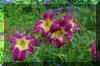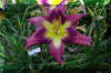 Spider Ratio 4.19:1 | Herrington K | 2001 | Dor | EM | 41 | 7 | Rose red blend with wine red eye above green throat. (Magic of Oz x Red Ribbons) | HM 2004 |