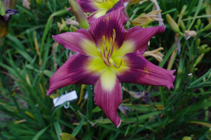 Spider Ratio 7.20:1 | Roberts N | 1998 | Sev | L | 32 | 5 | Wine red self with yellow throat. (Capulina x Black Plush) | HM 2006 |