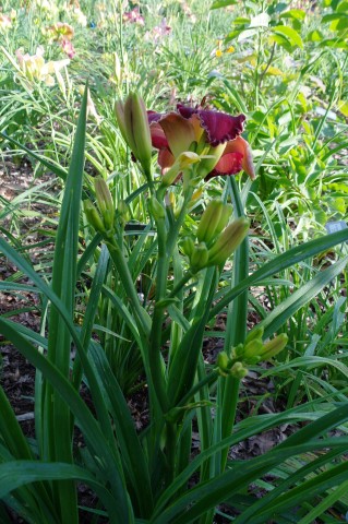 Herrington T | 2009 | Dor | M | 24 | 4.5 | Chocolate red with burgundy eye above yellow throat. (Nutmeg Elf x sdlg) | |