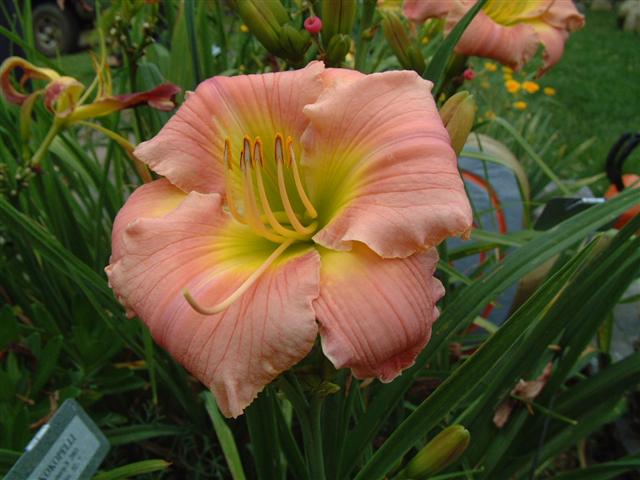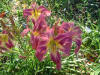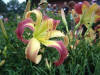 Valente | 2000 | Dor | M | 30 | 6 | Fragrant. Rose pink with yellow edge above chartreuse throat. (Chance Encounter x Castle Camelot) | ||