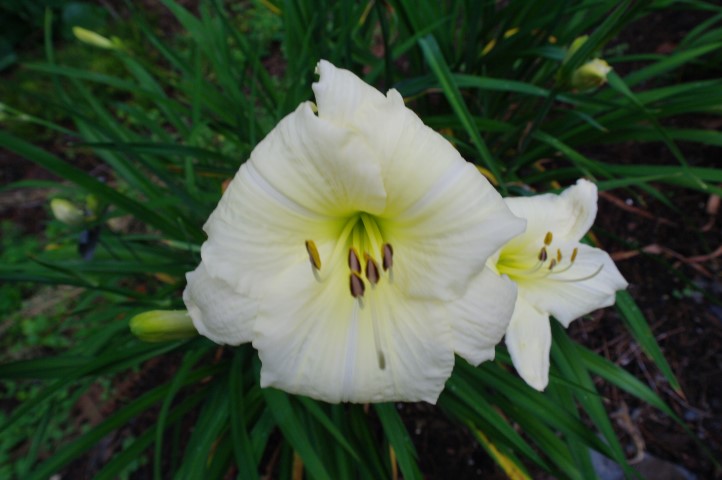 Durio | 1977 | Ev | EM | 25 | 6 | Near white self with lime green throat. (Loving Memories x Little Infant) | AM 1984 HM 1981 Len 1990 |