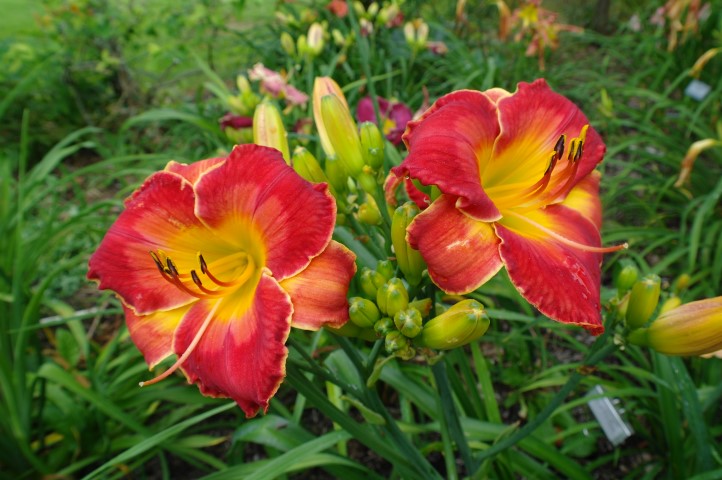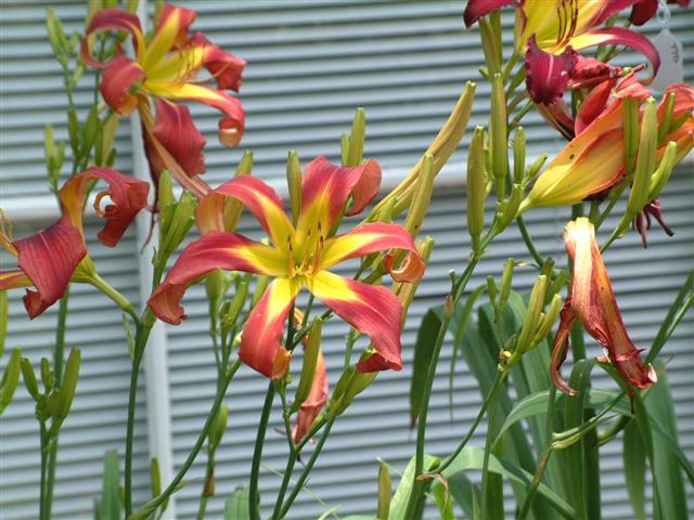 Lewis J | 1989 | Dor | ML | 26 | 3.25 | Red and yellow blend with cinnamon brushing and green throat. (Texas sunlight x sdlg) | HM 1995 | |