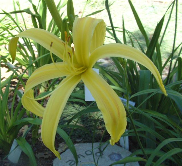 UF Crispate | Bishop H | 1990 | Dor | E | 35 | 3.5 | Lemon yellow spider self with green throat. (Mignon x Suzie Wong) | AM 2017 HM 2014 ESB 2015 |