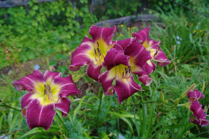 Emmerich | 2006 | Dor | M | 24 | 6 | Fragrant. Reddish purple with silvery lavender watermark and edge above yellow to green throat. (Forbidden Desires x Born to Reign) | ||