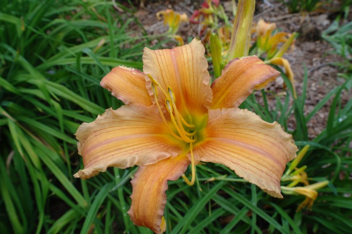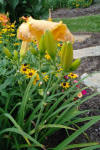 with deeper rose eye and gold orange picotee above avocado throat. [Bahama Butterscotch × (sdlg × Tet. Siloam Virginia Henson)] |