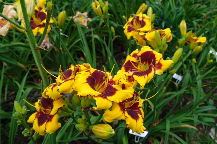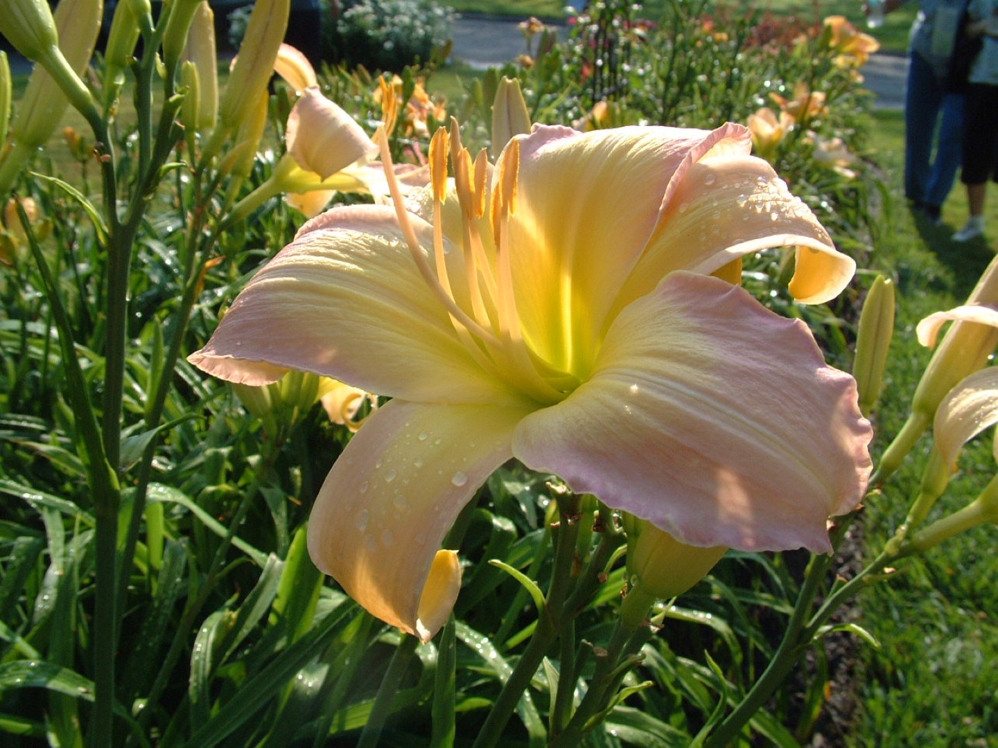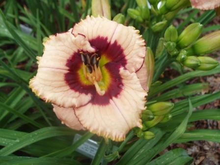with gold eye above olive green throat. (Peach Magnolia × Jewel of Morning) |