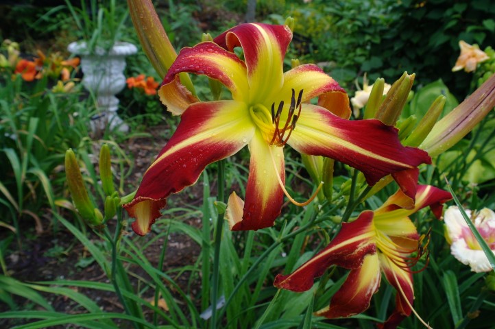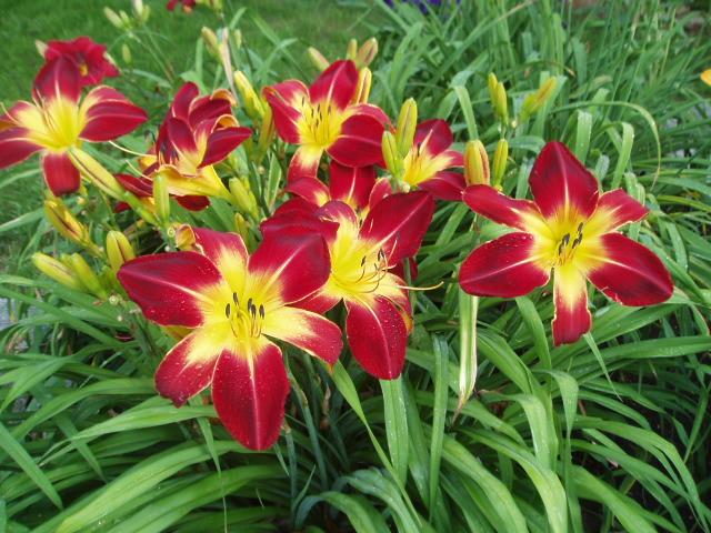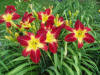 UF Cascade | Trimmer | 2002 | Ev | M | 42 | 12 | Bright red self above yellow green throat. (sdlg × Long Tall Sally) | HM 2006, AM