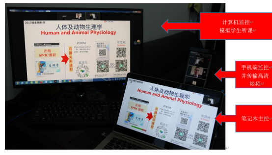 陈湘定教授、王跃群教授等《人体及动物生理学》教学团队采用国家精品在线课程《生理学》进行异步SPOC重构,一方面学生积极在线上进行自学,同时在固定的时间节点进行ZOOM平台直播互动教学,完全实现在线课程混合教学,教学效果很好。主要特点:线上线下学习结合、多种直播平台预案、多种途径监控平台效果、学生线上课程认真学习、网络直播课程学生全面参与并积极讨论。