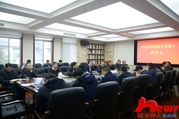 (记者 蔡颂 黄林键 张静璐)12月25日下午,校党委书记蒋洪新、校长刘起军、副校长欧阳峣、匡乐满前往生命科学学院看望刘少军院士,祝贺他新当选为中国工程院院士。座谈会在生科院三号楼422会议室举行,欧阳峣主持会议。