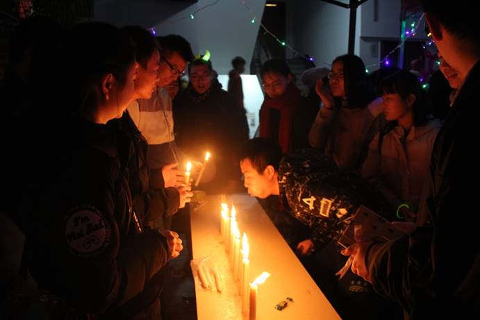 另外,在生科院1号楼的工会活动室,专门设有炫酷KTV,供给热爱唱歌的老师和同学们,体验唱歌的乐趣。在103教室,生科院各个社团为大家准备了多种美食,抄手、水果、奶茶、寿司,实行贩卖制,在同学们制作食品饮料的同时,也体验了经营式的活动,给晚会增加了更多乐趣。