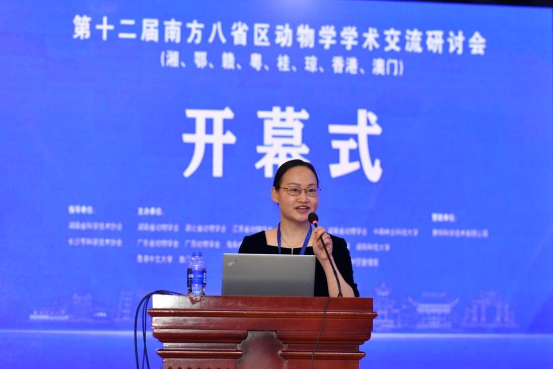 湖南省动物学会理事长、湖南师范大学教授徐湘代表湖南省动物学会致辞,她简要介绍了南方多省区联合主办动物学学术交流会的历史,希望动物学工作者共同珍惜老一辈搭建的学习交流平台,并通过一代一代人的努力,继续把平台发展好,让一代一代的动物学工作者受益。