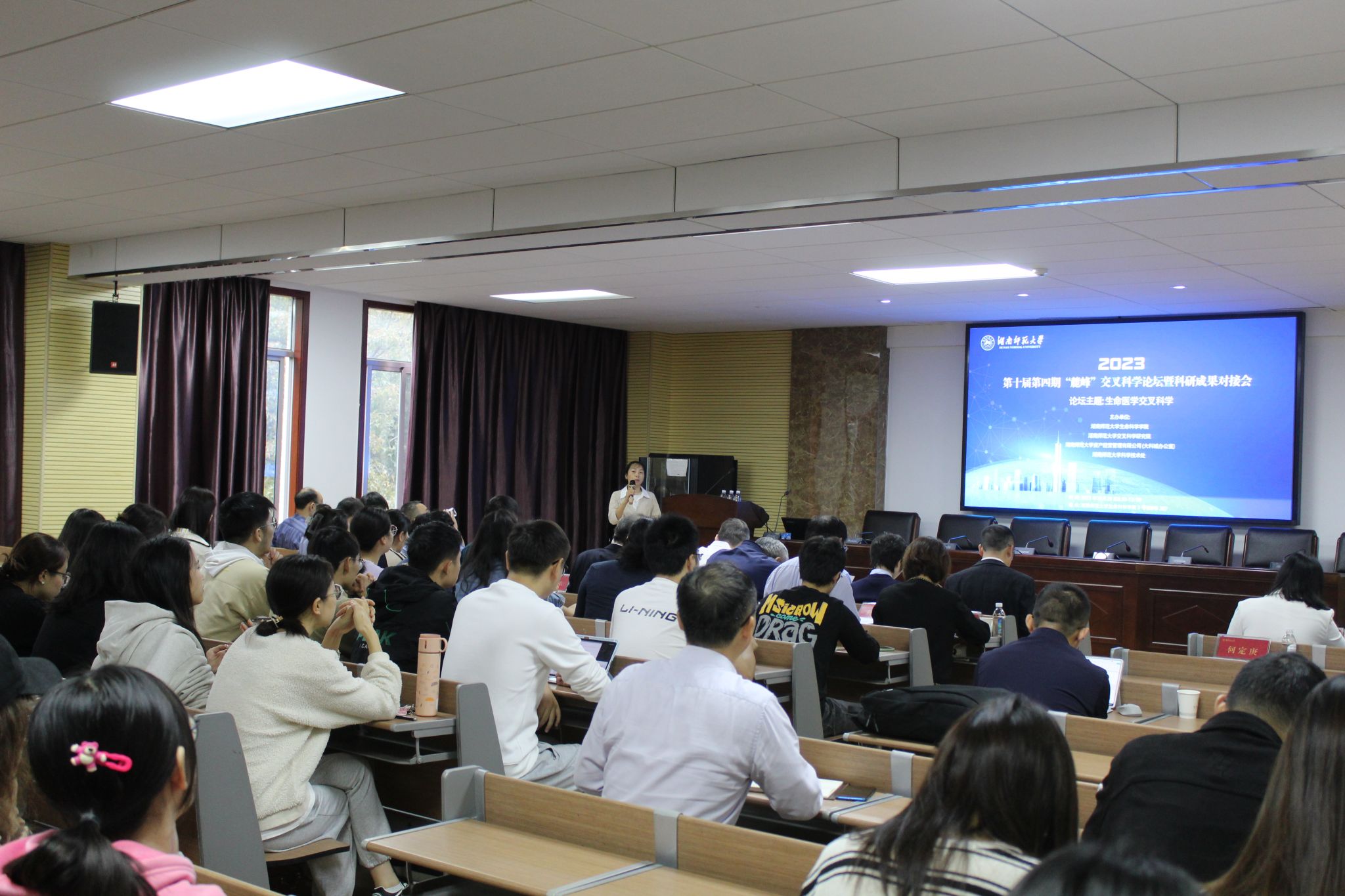10月28日上午,我校第十届第四期“麓峰”交叉科学论坛暨科研成果对接会在生命科学学院3号楼B307报告厅举行。本期论坛的主题是“生命医学交叉与融合”,由生命科学学院、交叉科学研究院、资产经营管理有限公司(大科城办)、科学技术处共同主办。