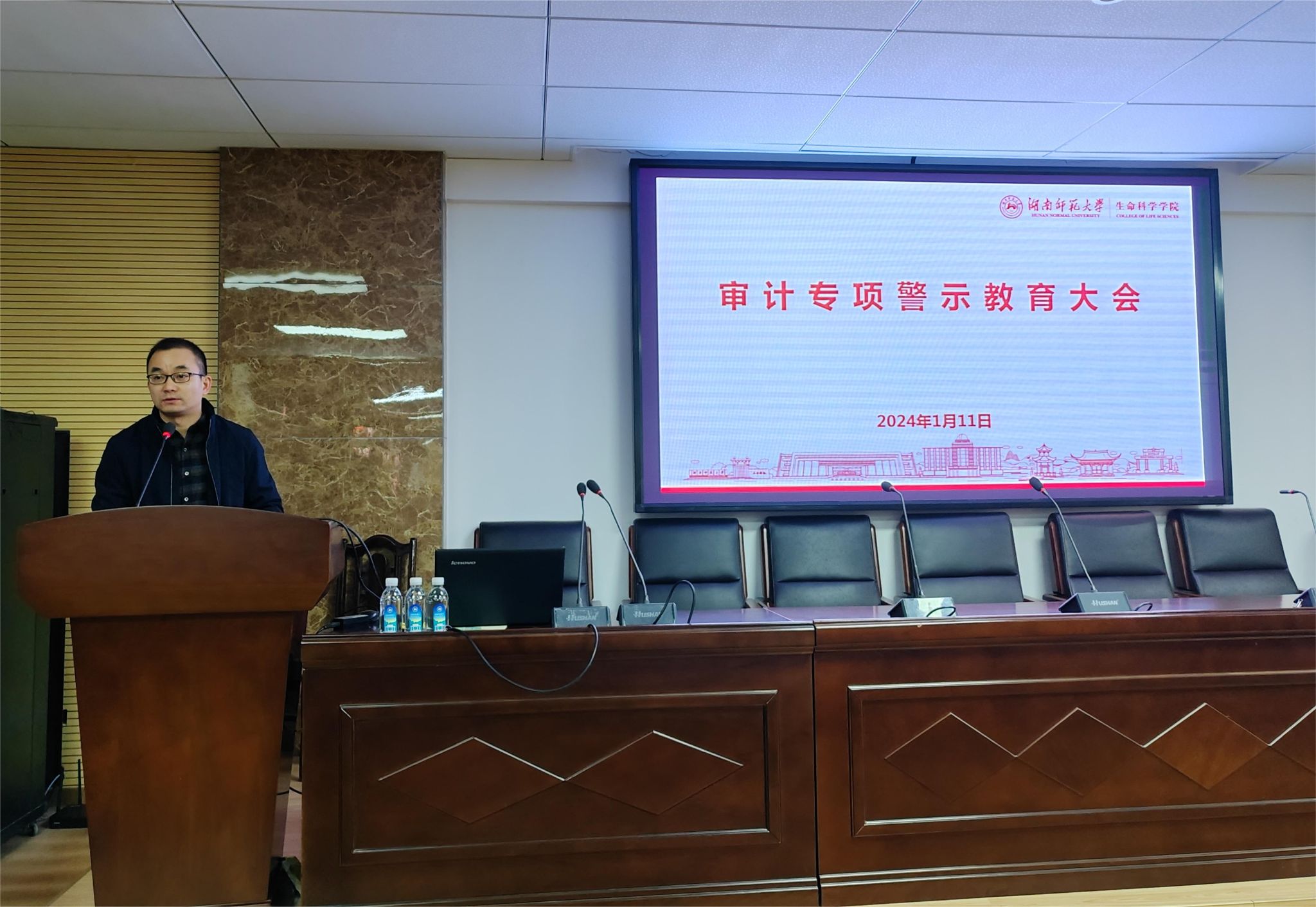 2024年1月11日下午,学院在3号楼307报告厅召开审计专项警示教育大会,会议由执行院长胡胜标主持,大会特邀湖南省科技厅科技监督与诚信建设处刘高处长参加。