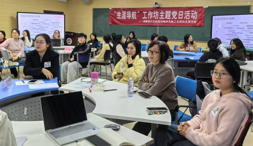 (通讯员屈晓超、李雅丽、王娟)党的二十大以来,党中央高度重视就业工作和人才培养,国家大力实施就业优先战略,强调稳就业、保就业,提出了一系列新理念、新思想和新战略,为我们指明了方向。2024年11月28日,在生科院三号楼B306教室,动物学系教工党支部、生理学专业研究生党支部和动物学专业研究生党支部联合开展了一次以就业指导和人生规划为主题的“生涯导航”工作坊主题党日活动。活动邀请了微生物系常海燕老师和渡渡鸟家学研究院的教习师参加。