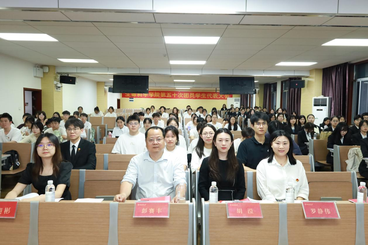(通讯员 王佳佳 欧阳萱 唐雨楠)5月15日晚,生命科学学院第五十次团员学生代表大会于生科院3号楼B栋307学术报告厅举行。校团委副书记胡滢、院党委副书记彭赛丰出席此次活动。院学工办主任兼2022级辅导员周冲、院学生党支部书记兼2023级辅导员吴晴、2021级辅导员刘迎彬参加此次会议。院团委书记兼2024级辅导员罗静伟担任此次活动主持人。各班学生代表、社团代表参加此次会议。