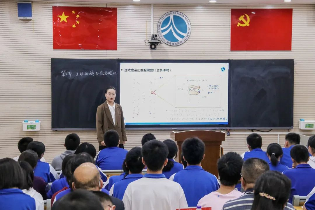 11月3日,实习老师何文欣、李心韵主讲的汇报课《主动运输与胞吞、胞吐》于师大附中惟一楼一楼东第一多功能厅顺利开展。为深入了解师范生实习情况,湖南师范大学组织专项工作组赴师大附中关心慰问实习老师,并联合师大附中教研组对实习队各项工作进行了检查。湖南师大生科院党委书记谢罗庚、教学副院长陈湘定、生科院专任教师戴国、外国语学院副院长刘白、历史文化学院副院长徐良利、美术学院党委副书记莫南、教师教育学院教管科科长谢燕、候会丽老师、师大附中科技创新中心副主任黄俊、教学指导委员会主任汪训贤、学术委员会委员李尚斌、生物教研组组长杨群英、副组长朱昌明莅临现场指导,附中生物组教师及全体实习老师参与。