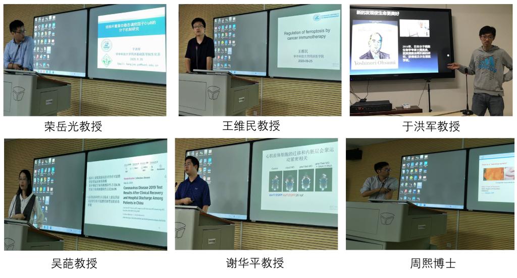 此次学术沙龙,其乐融融,你方作罢我登场,大家交流十分充分,原本3小时沙龙一共持续了4个小时。华科大的荣岳光教授就自噬性溶酶体再生的分子机制进行了汇报,王维民教授给大家讲述了免疫治疗中铁死亡的现象和机理,于洪军教授则从结构学的角度解析肺结核菌关键因子为未来药物设计提供了基础。生科院吴葩教授和大家分享自己关于蚊媒病毒传播机制以及今年对新冠病毒的研究成果,谢华平教授为大家介绍了两个心脏的斑马鱼形成的机制,周熙博士则分享了今年作为第一作者发表的Nature communications上关于蜘蛛毒素的研究工作。