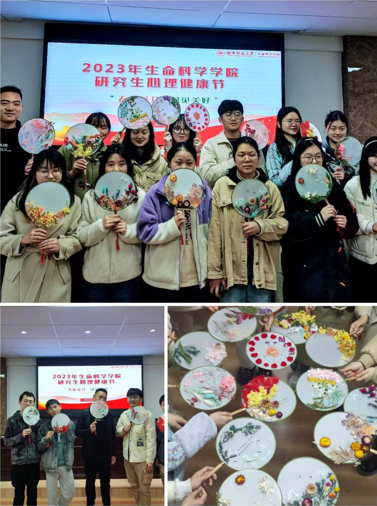 为推动新时代我校研究生心理健康教育工作,帮助研究生群体在学习、工作及生活中保持阳光乐观的心态与积极向上的人生态度,生命科学学院于3月18-20日成功举办“春暖花开 绿见美好”第二届学院研究生心理健康节。本届心理健康节由学院研究生会组织,以线下和线上结合的方式开展。“寻找最治愈画面”心理摄影比赛,邀请研究生们以拍照打卡的方式传递正能量和积极情绪,共同提升幸福感,最终由全院导师和研究生们共同线上投票推选出优秀作品。线下活动有“绿见美好心情”绿植领养、“心境雅趣,制扇至美”永生花团扇DIY、“放飞梦想”互赠祝福卡片、赠送调节心情小贴士等,活动形式兼具趣味性与教育性,取得了良好反响的同时,在学院内营造了浓厚的心理健康氛围,构建了和谐、向上、健康、青春的校园文化。