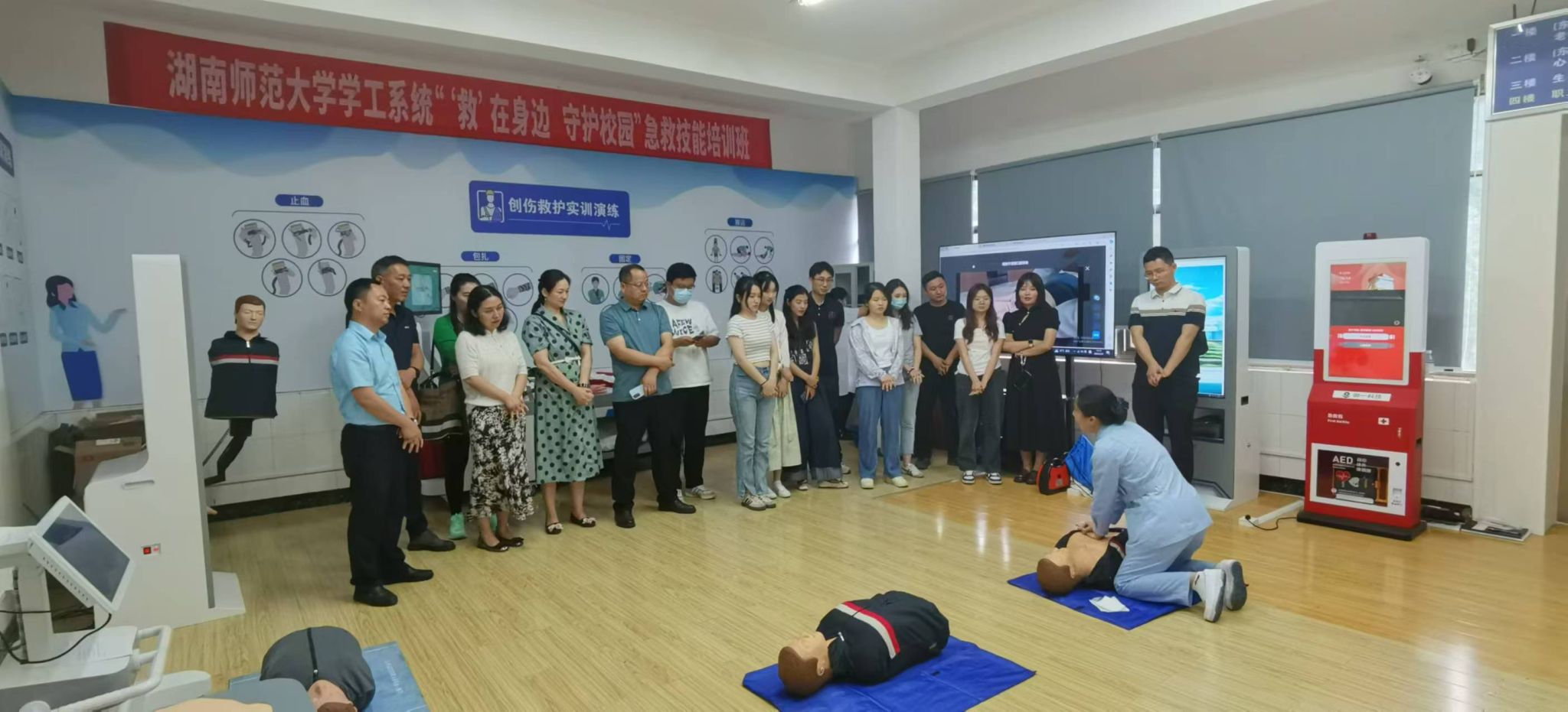 (通讯员 刘迎彬 邓芝涵)5月27日下午,生命科学学院党委副书记彭赛丰带领学工办老师一行,赴校医院四楼急救教育实训室,参与“‘救’在身边,守护校园”急救技能培训班。此次培训旨在进一步提高学工系统老师的应急救护能力,为构建安全、健康的校园环境贡献力量。