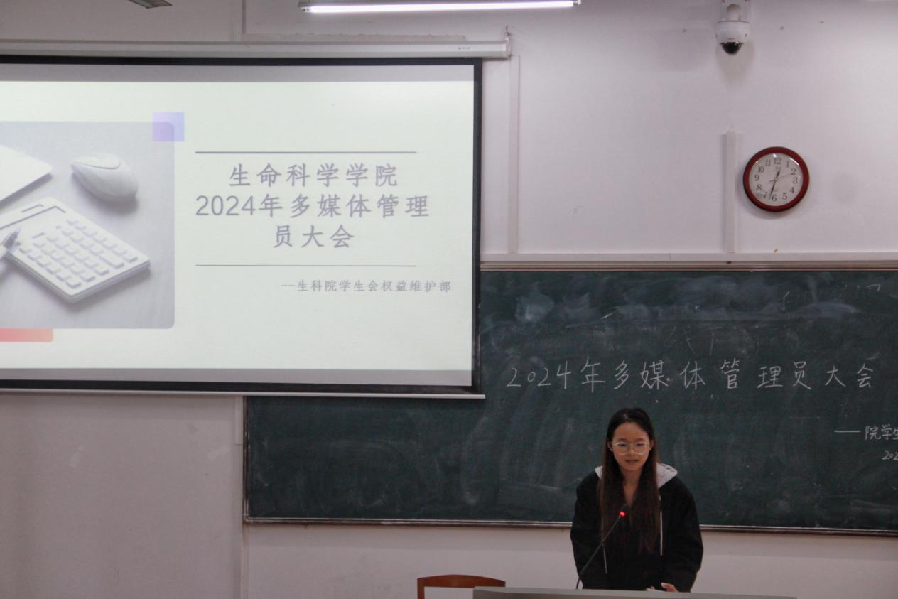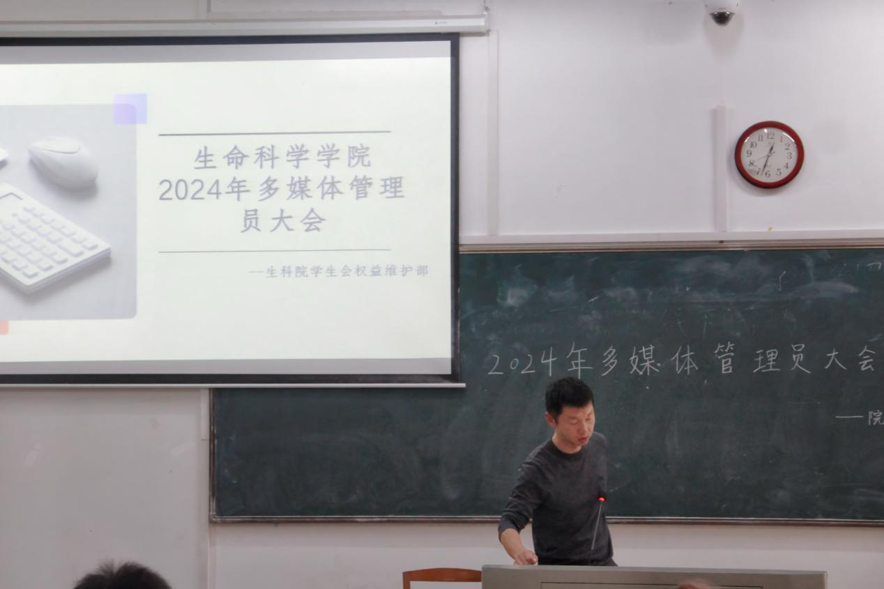 (通讯员 谢志艳 章超凡)11月28日中午,生命科学学院学生会权益维护部于生科院4号楼103教室召开多媒体管理员培训会。生科院多媒体技术员陈成与院学生会权益部第二负责人谢碧瑶担任此次会议的主讲人。生科院2022级、2023级、2024级各班多媒体管理员参与此次培训会。