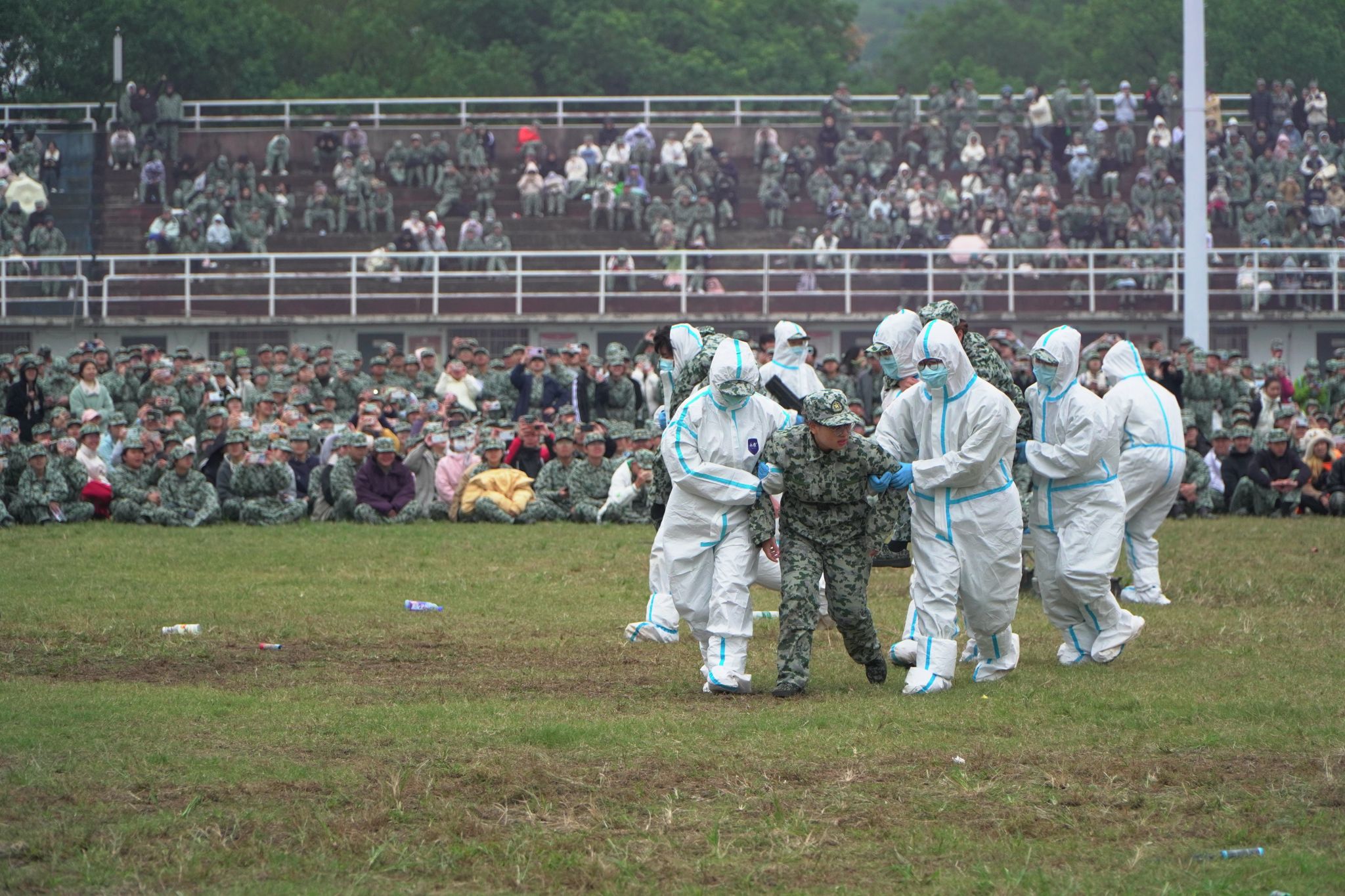 大会现场,分列式汇报环节尤为引人注目。生命科学学院新生方阵迈着整齐划一的步伐,昂首挺胸地走过主席台,嘹亮的口号响彻田径场,展现出蓬勃的朝气与昂扬的斗志。此外,学院还积极参与学校风采展演环节,与化学化工学院联合呈现了核生化防护演练。演练过程中,双方学子密切配合,将专业知识与军事训练深度融合,从防护装备穿戴到应急处置流程,每一步都有条不紊,充分展现了 “防患未然,处置精准” 的安全意识,成为本次汇演中的一大亮点,获得了现场领导与师生的高度认可。在新生军训期间,生命科学学院高度重视,扎实推进军事训练组织与教育管理工作。学院领导始终密切关注军训整体工作进展,多次深入军训现场看望慰问新生与教官,了解训练情况与新生需求。各连队教官严格按照军训计划开展军事技能训练,耐心细致地指导每一个动作;班级辅导员则全程陪伴在新生身边,及时解决新生在生活、学习和心理上遇到的问题,与教官协同配合,做好各类后勤保障。