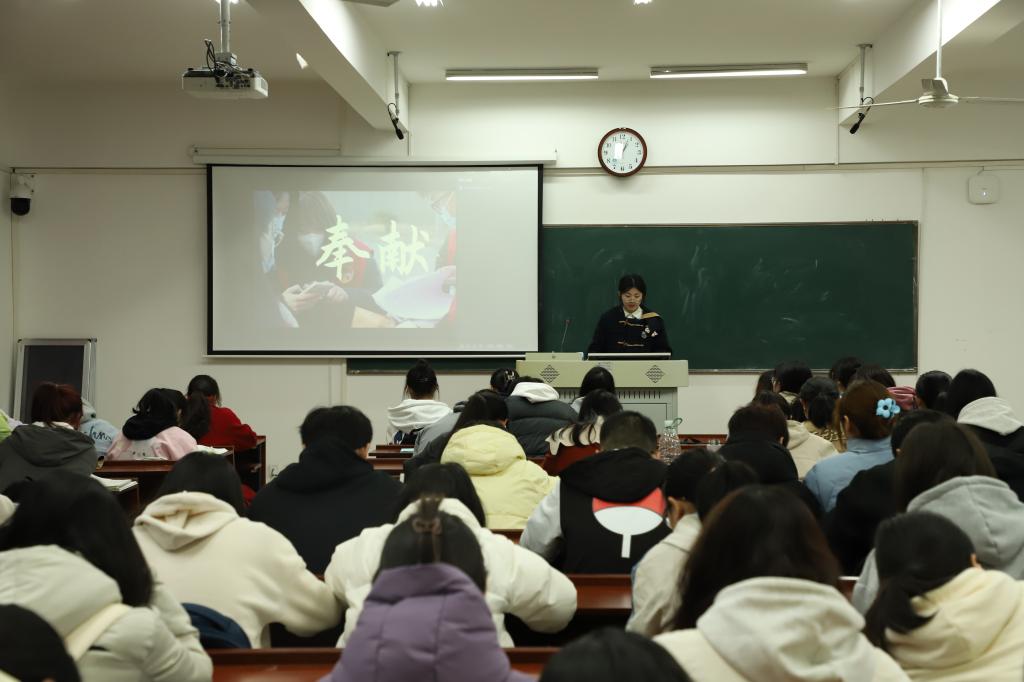 谌鑫怡以“传承雷锋精神,点燃志愿星火”为题,向同学们说明了雷锋精神的实质和核心是全心全意为人民服务。她以播放影视短片的方式介绍了如何传承雷锋精神,即坚守内心的初衷,永远拥有真诚与火热的赤子之心。李锦怡围绕“志愿有我,微光如聚”的主题,通过纪录短片向同学们分享青工部主办的志愿活动。她介绍了志愿者的相关工作任务以及要求,并以个人志愿经历和心得收获,号召同学们积极参与志愿活动。