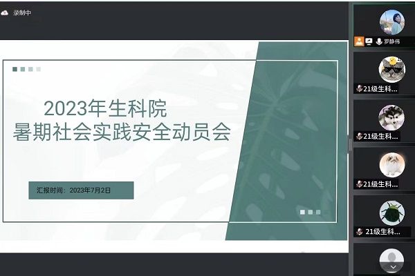 (通讯员 黄少彬 李冰月 金溏)7月2日下午,生命科学学院团委社会实践部于线上举办三下乡活动宣讲会。生科院团委负责人兼2020级辅导员罗静伟出席此次会议。生科院团委实践部干事王俊龙担任宣讲会主持人。