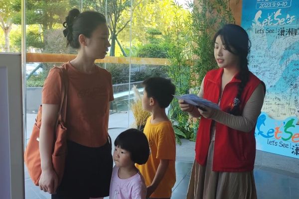 志愿者提前到达活动场地,由场馆工作人员向志愿者讲解“潇湘自然,大咖演讲”活动流程,同时戴孟霖为志愿者分配具体任务。志愿者为参与者介绍活动详情,引导参与者签到,入座,并维持活动场馆秩序。志愿者在活动期间分享各自的经历体验和有趣见闻,为提高观众参与度,志愿者以提问的方式同观众们进行互动,同时向观众讲解相关自然知识,呼吁大家走近自然,感受自然。志愿者同参与者进行合影留念,并对场馆进行打扫清洁。