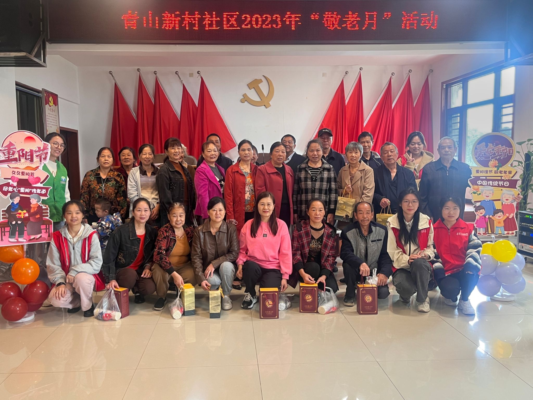 志愿者与老人合影