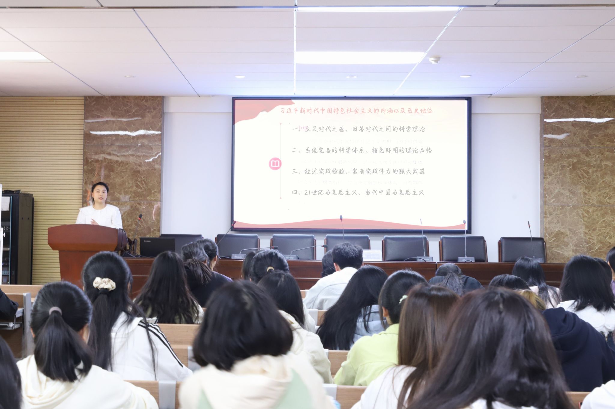 罗静伟以视频和音频的形式进行话题引入,从“立足时代之基、回答时代之问的科学理论”,“系统完备的科学体系、特色鲜明的理论品格”,“经过实践检验、富有实践伟力的强大武器”和“21世纪马克思主义、当代中国马克思主义”四个方面讲述了习近平新时代中国特色社会主义思想的内涵和历史地位。她紧紧围绕“习近平新时代中国特色社会主义思想是党和国家必须长期坚持的指导思想”这一主题,对习近平新时代中国特色社会主义思想的核心要义作了全面、系统的阐述。为调动同学们的积极性,罗静伟老师向同学们提出“有没有加入中国共产党的意愿”以及“为什么想要加入中国共产党”的问题,2023级团校成员表示加入中国共产党是崇高的理想信念,是人生的目标选择。