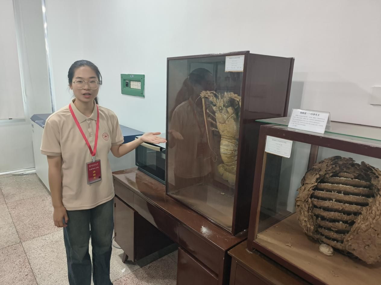 讲解员讲解无脊椎动物标本