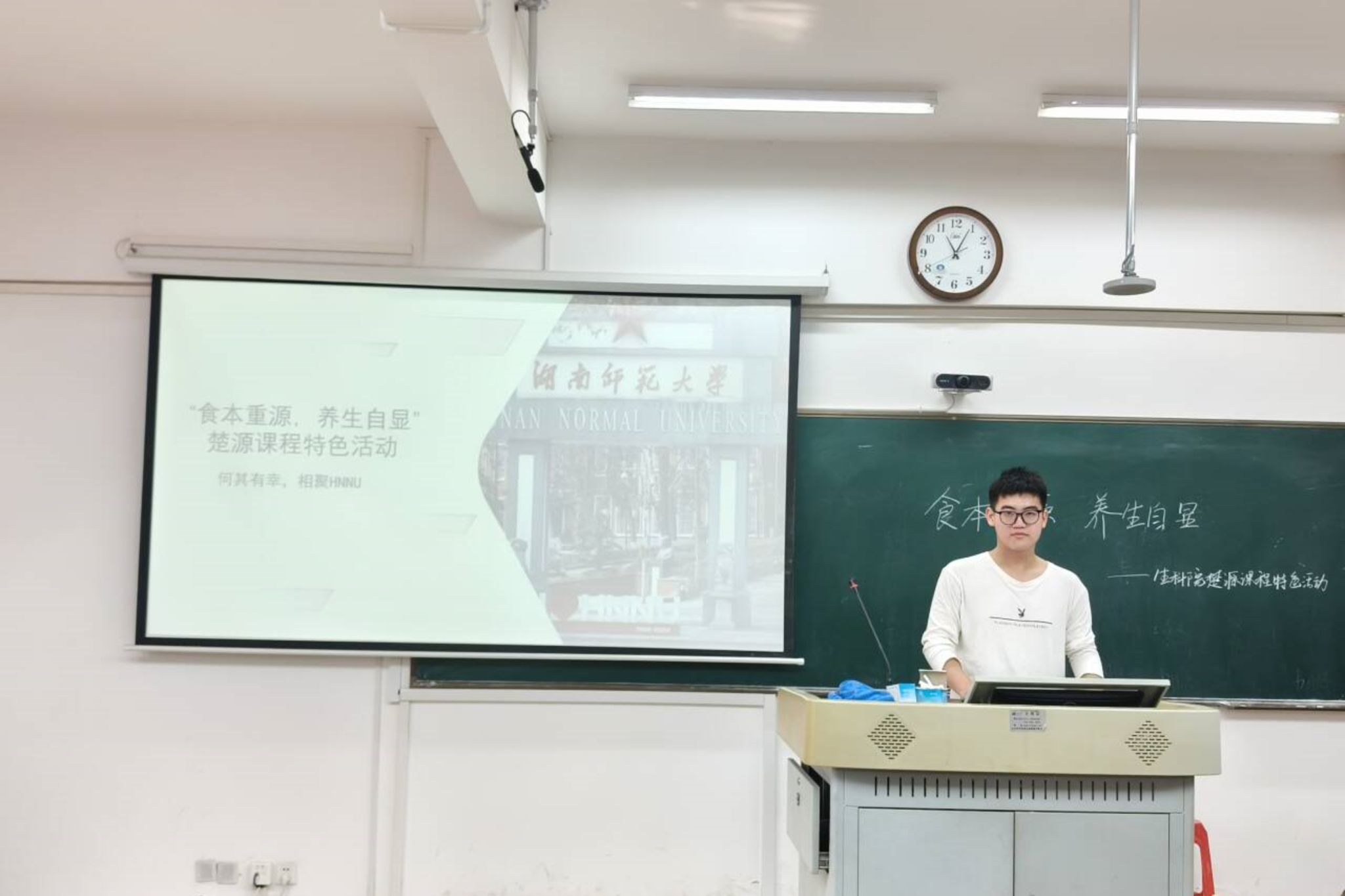 (通讯员 黄少彬 文遥 袁婕)10月13日上午,为贯彻落实“民以食为天”的理念,深入学习《食品保健与养生》楚源课程相关知识,生命科学学院团委社会实践部于生科院三号楼b103教室举办“食本重源,养生自显”楚源课程特色活动。生科院实践部部长黄少彬担任此次活动主持人。生科院团委书记罗静伟老师、生科院团委部分成员、生科院楚源课程《食品保健与养生》部分学员参与此次活动。