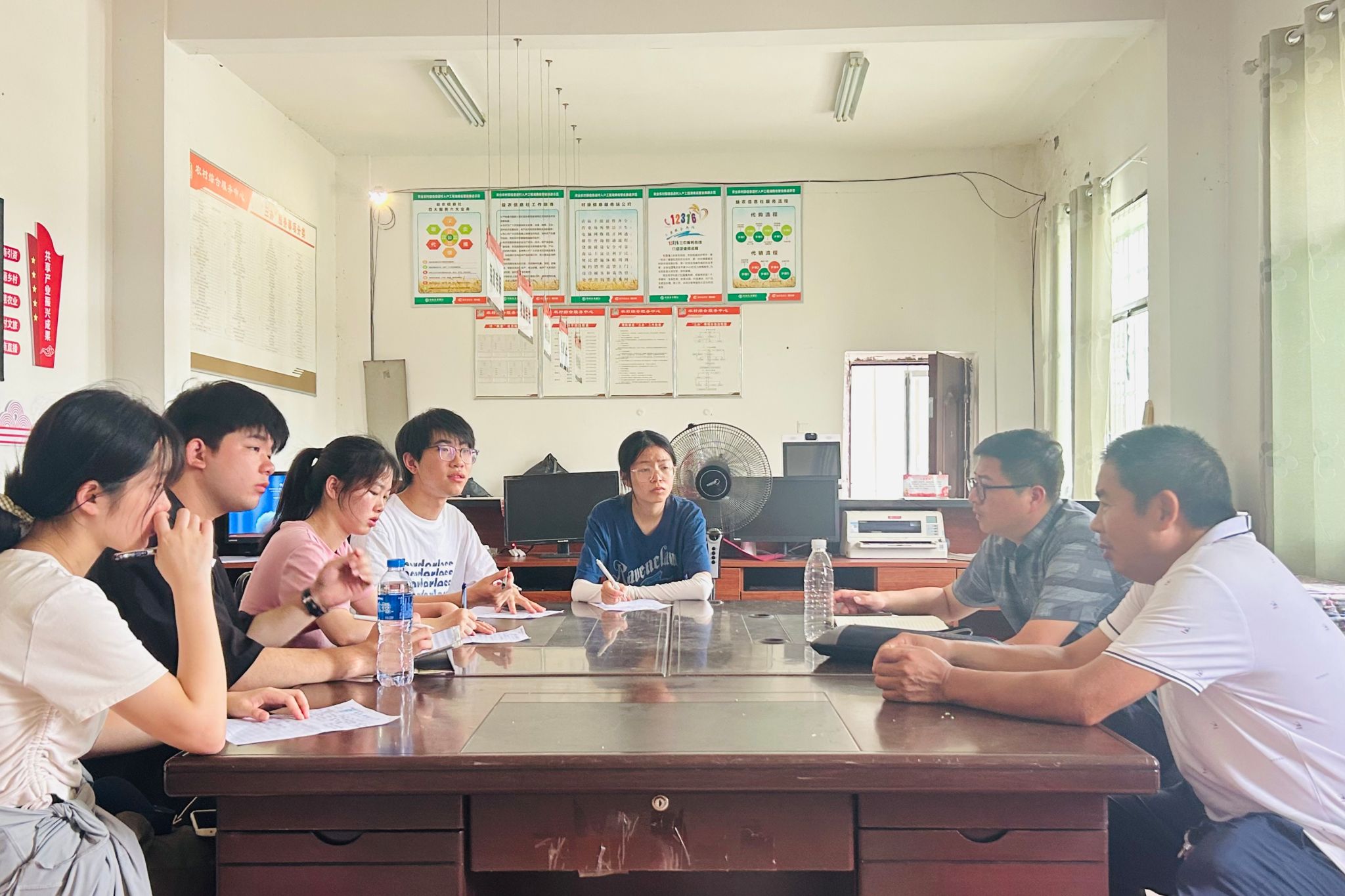 团队成员与三角村村委书记谭勇琳、上届村委书记曾安民及民政专干谭雨兰等五位干部进行深入的座谈。谭勇琳详细介绍了村委的组织结构和职责范围,并指出,三角村以黄花菜种植为主导产业,辅以棉花、油茶、花生和红薯等经济作物。近年来黄花菜和油茶产量出现下降,部分村民选择外出打工。但随着网络经济的发展,线上电商为农产品销售提供了新的渠道,吸引部分青壮年劳动力返乡创业。随后,团队与村干部就三角村的未来发展进行深入讨论。谭勇琳表示,将坚持以村民需求为导向,发挥基层党组织的引领作用,进一步完善基础设施建设,提升村民的生活质量。