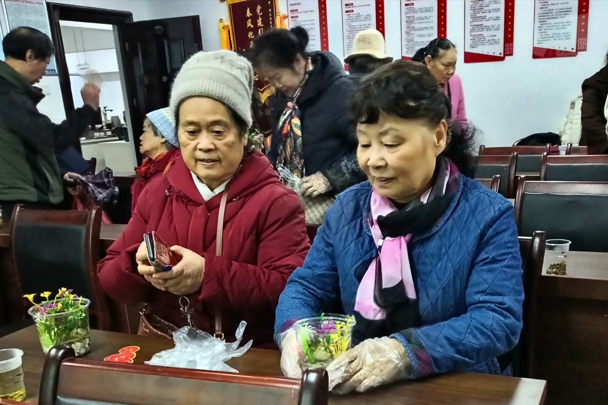 老人们水培水仙花