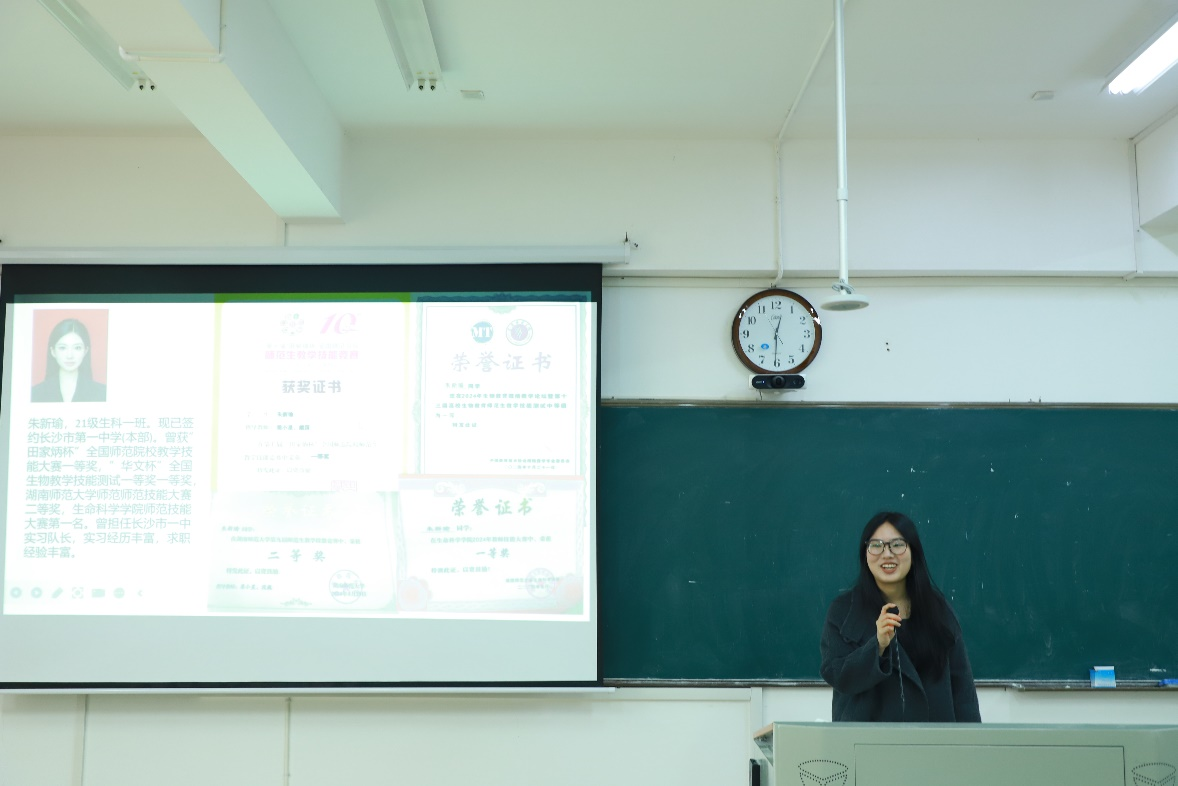 (通讯员 李一帆 罗斌)3月20日中午,生命科学学院(以下简称“生科院”)团委青年创新创业服务中心于生科院3号楼B10教室举办“师途逐梦引前路,就业解惑启新篇”精勤讲堂主题讲座。湖南师范大学生科院2021级生科一班朱新瑜担任此次讲堂主讲人,生科院团委青创中心干事陈奕豪担任主持人。生科院2022级、2023级、2024级部分同学参加此次讲座。