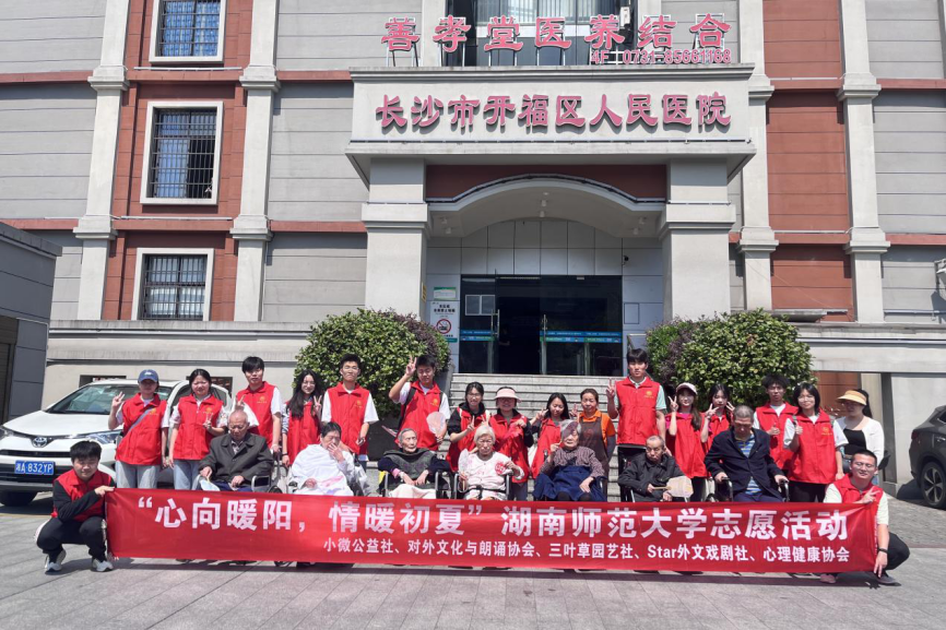 (通讯员 赵洛希 李佳怡)5月25日,生命科学学院团委青年志愿者工作部联合校内多个社团,于善孝堂老年康养中心及潮宗街街区举办以“心向暖阳,情暖初夏”为主题的敬老志愿服务活动。商学院、生科院、外国语学院以及医学部部分本科生参与此次活动。