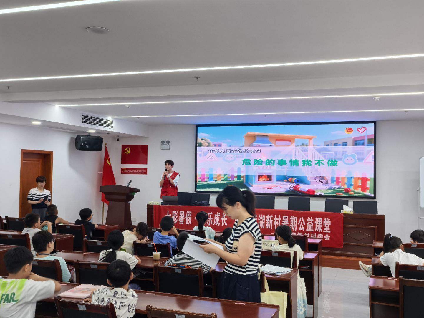 志愿者首先开展“危险的事情我不做”身心成长课程,带领同学们了解常见自然灾害类型、危害以及应对方法,并进行消防演练和地震逃生演练。实践团采用多种教学形式,在知识问答环节,志愿者播放相关视频,调动同学们积极性并激发他们的思考;在情景表演环节,同学们身临其境,了解解决步骤和逃离手段。随后,实践团开展“妙趣传统节日,手工体验端午情”文化传承课程。主讲人介绍端午节的起源和相关习俗,讲解该传统节日的文化内涵。在志愿者们的协助下,同学们参与手工活动包粽子,折容器、包粽子、缠彩线、做装饰,按以上步骤完成后同学们进行了作品展示。