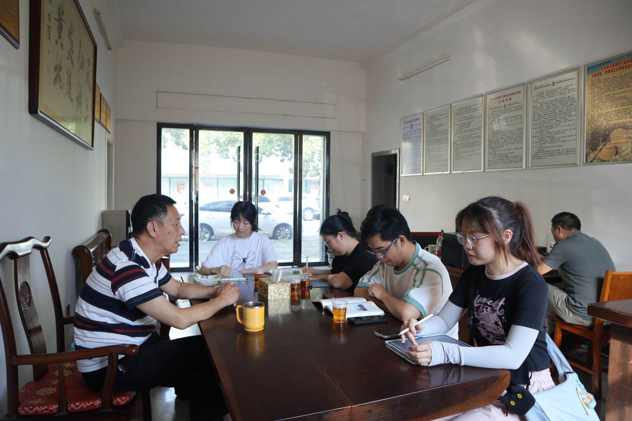 (通讯员 杨静茹 黄静怡)7月11日上午,生命科学学院达人学社赴株洲炎陵县社会实践团在黄桃产业协会开展炎帝文化调研。炎陵文化研究会副会长谭忠诚接受采访,达人学社实践团部分成员参与此次调研。