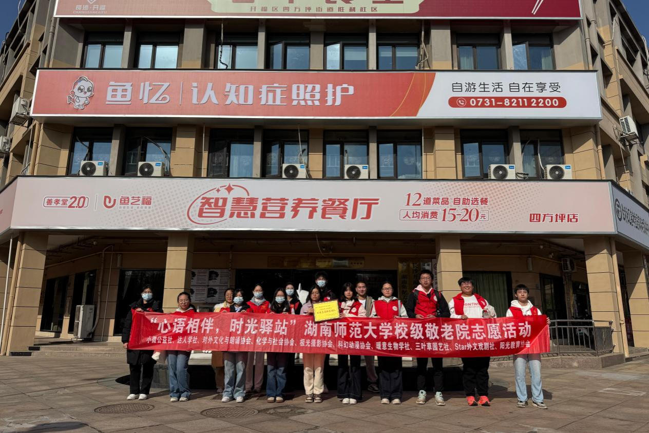 (通讯员 李佳怡 赵洛希)生命科学学院团委青年志愿者工作部联合小微公益社等校内多个社团,于湖南鱼忆认知症照护中心举办“心语相伴,时光驿站”第五期敬老志愿服务活动。生科院及商学院、医学部等其他学院部分志愿者参与此次活动。