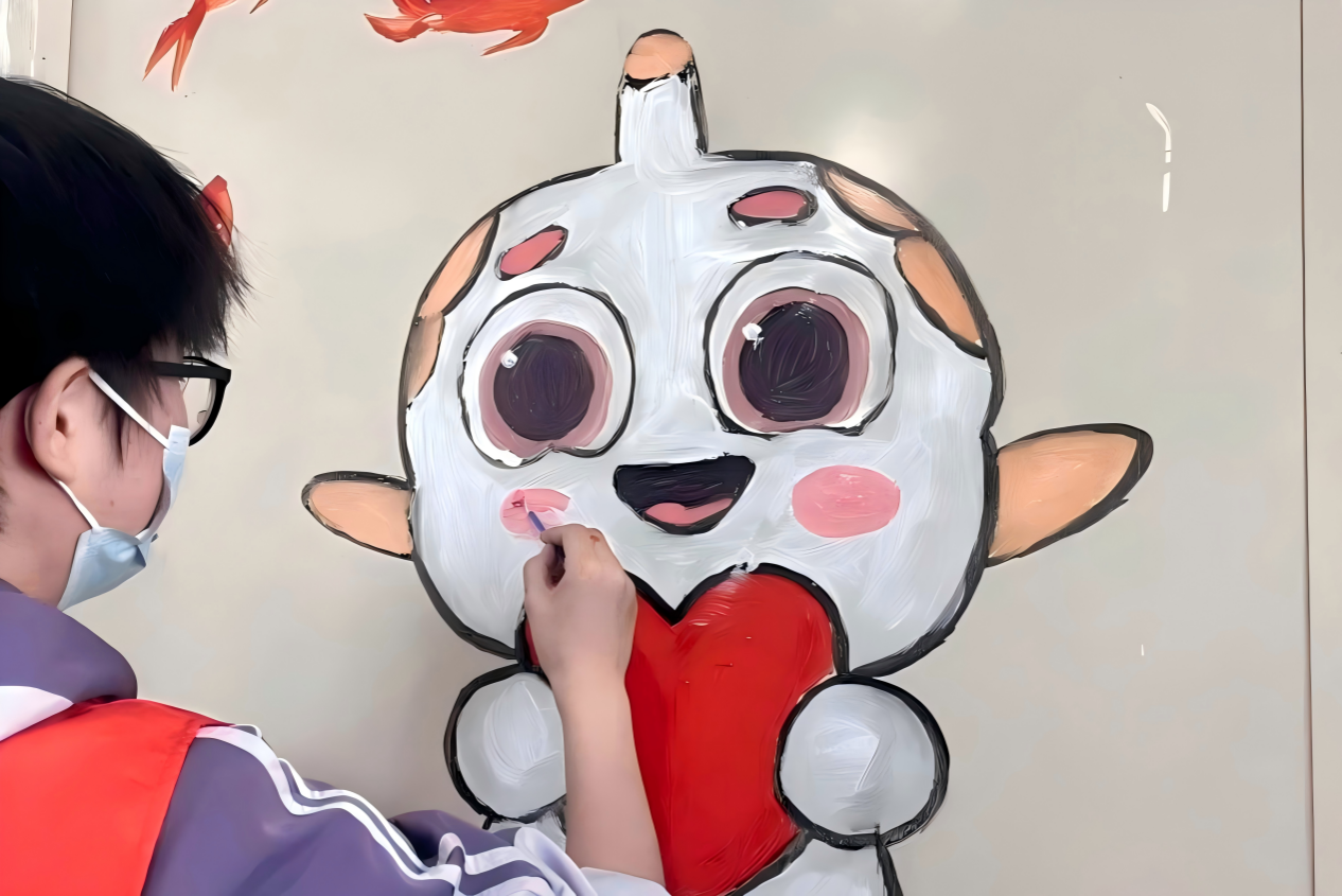 志愿者为养老院制作墙绘