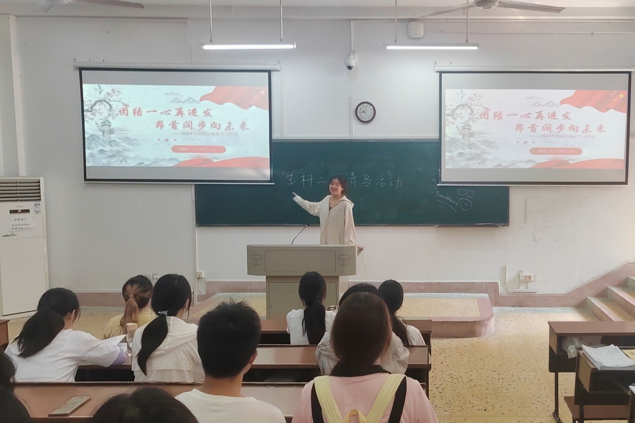 (通讯员 周欣宇 田灿)5月17日上午,生命科学学院2022级生科二班第二青马学习小组于生科院103教室和肖劲光故居举办以“2024年全国两会精神”为主题的“团结一心再进发,昂首阔步向未来”青马小组学习活动。2022级生科二班第二青马学习小组组长担任此次活动主讲人。生科院2022级生科二班第二青马学习小组全体同学参加此次活动。