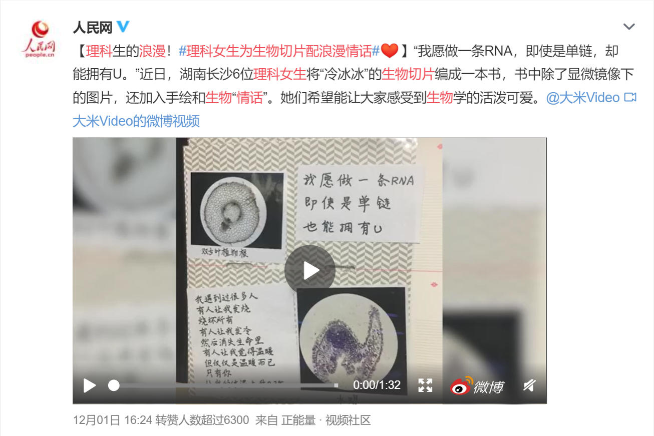 《生物图鉴》创意性地结合生物切片与浪漫情话,多角度呈现生物世界,使学科知识更具亲和力,并展示出生科人的专业素养与情怀,向大众传播生物学的魅力。