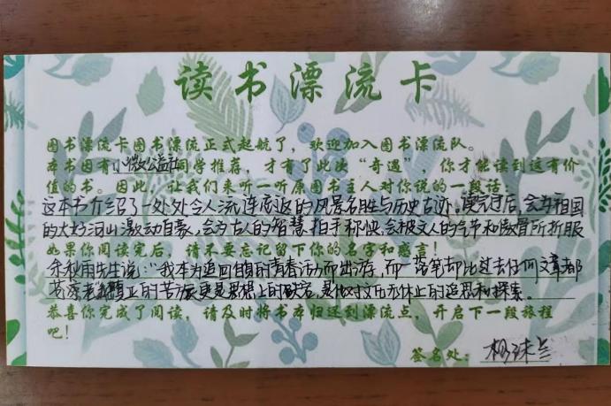 (通讯员 王梦月 郭英美)5月7日至5月28日下午,生命科学学院读书协会,暖阳生物学社、小微公益社、达人学社、三叶草园艺社、文学院梨轩戏曲、新传院MIC主持人俱乐部和湖南师范大学图书馆联合举办阅读马拉松挑战赛第一程图书漂流活动。读书协会理事长郭英美担任项目负责人。